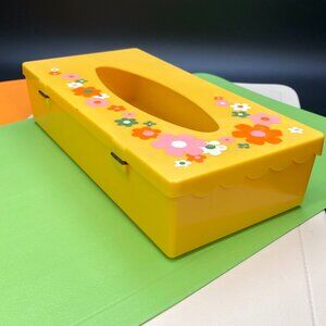 Vintage 60s Flower Power Tissue Box Cover: Yellow Hard Plastic - Groovy Bathroom