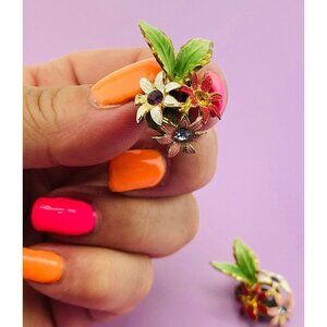 Gorgeous vintage Austrian painted enamel and rhinestones earrings