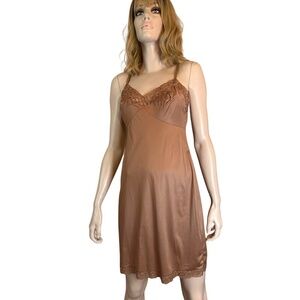 Vintage 60s KAYSER Full Slip 100% Nylon Matching Mocha Lace Lacy