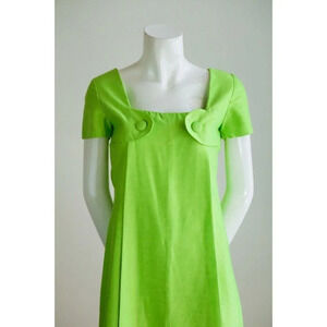 Vintage 60s LINEN Chartreuse Green A line Midi Dress S.