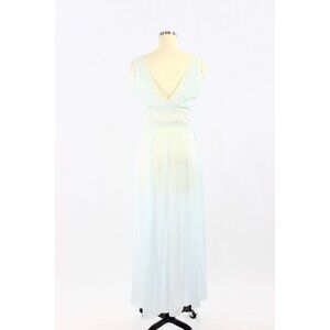 Vintage 60's LUXITE Light Blue Nylon Embroidered Mesh Plunge Slip Dress, Size 34