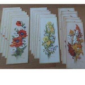 Vintage 60s Litho Print Set Lot 18 ROBERT LAESSIG MCM Autumn Bouquet Poppy Iris