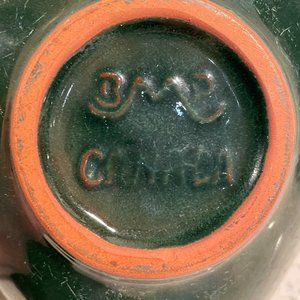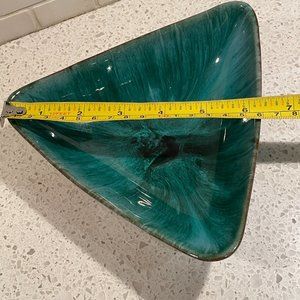 Selling a fabulous Vintage Mid Century Blue Mountain Pottery Triangular Bowl or Dish with Green Turquoise Marble Glaze. MCM style drip glaze triangle shaped dish. Made by Blue Mountain Pottery in Collingwood Ontario. This factory has since closed it doors and therefore this is one of the last in existence. The bottom reads "BMP Canada".
