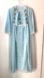 The set includes a sleeveless gown and matching long robe in a soft sky blue nylon with sheer overlay, white lace trim, and delicate embroidered blue roses.