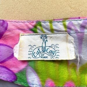 Darling vintage, floral, short sleeved, pantsuit with ruffled sleeves/hem. Both top/pants have side slits.