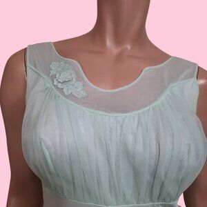 Vintage 60s Shadowline Nightgown Slip Dress Size S Pastel Green Nylon Sleeveless