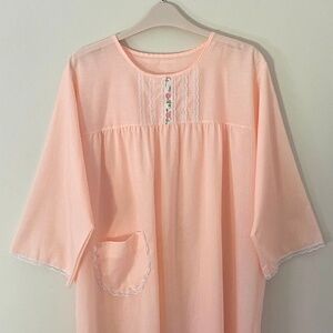 Vintage 60’s Sleep Dress with Lace Trim and Floral Details in Orange Sherbet - Size Large