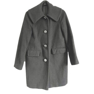 Vintage 60s Style Black Wool Cocoon Midi Big Collar Mid Length Car Coat - XS/S