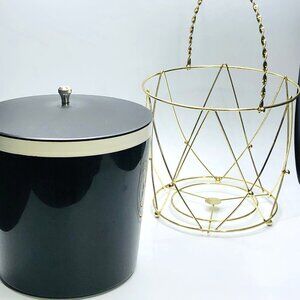 Vintage 60s THERMOS Drum Ice Bucket: Black Insulated Container - Gold Tone Caddy