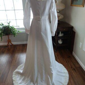 Vintage 60s Wedding Dress 35" Bust Bride Gown Daisy Lace Long Sleeves