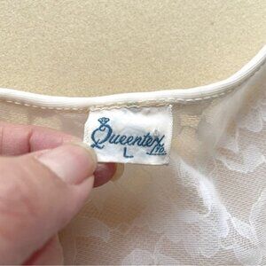 White with lace trim, double-layered, lace at chest and overlay lace on semi-sheer, nylon chiffon; 3 buttons at top