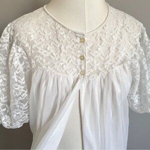 Vintage 60s White Double Layered Semi-Sheer Chiffon Robe Peignoir - M/L