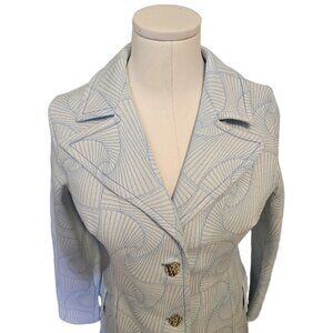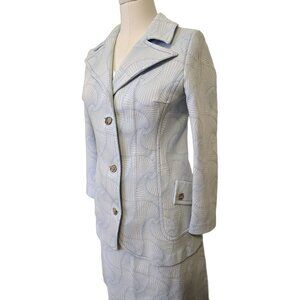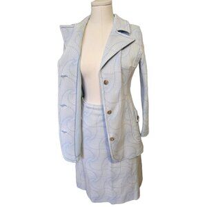 Vintage 60s Womens Suit Set Jacket Skirt Pants Mod Geometric Pastel Blue Retro L