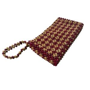 Vintage 60s Wooden Beaded Clutch Wristlet Purse