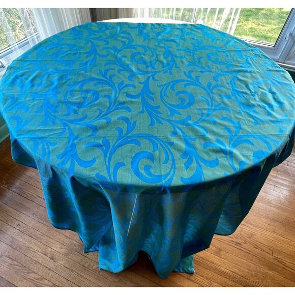 Vintage 60s curtain, blue, green jewel tones drape, shinny glossy single panel