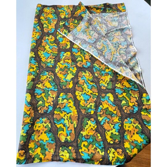 Vintage 60s curtain, blue, yellow, green, brown, orange abstract, Fiberglass