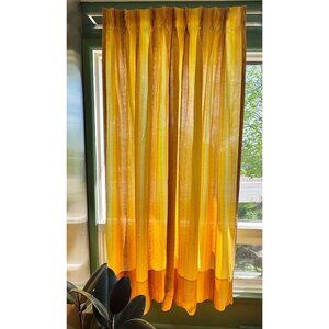 Vintage 60s curtain, orange, brown, yellow abstract bark print, Fiberglass panel