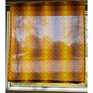 Vintage 60s curtain, orange, yellow, brown geometric diamond shaped pattern