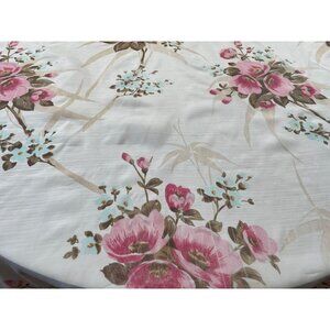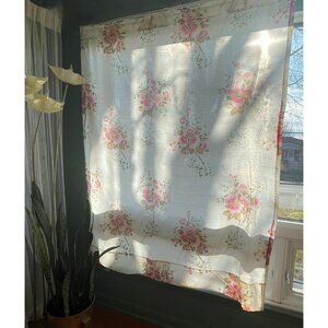 Vintage 60s curtain, pink, blue and tan flowers, leaves, single sheer panel