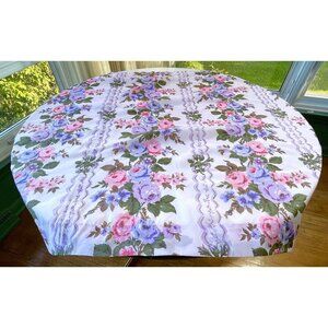 Vintage 60s curtain, purple floral, lined sheer polyester single panel