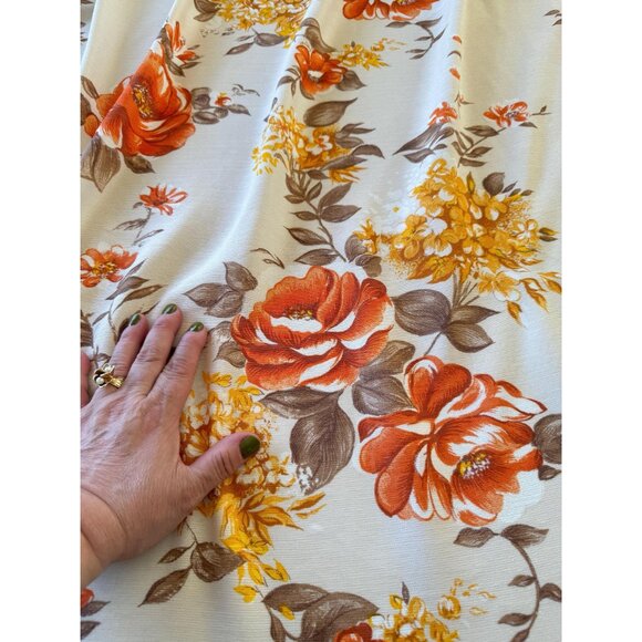 Large and bright flowers pattern, yellow, orange and brown over pale yellow background. Panel is not lined.