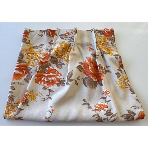 Vintage 60s curtain, yellow orange floral, semi-sheer, single pleated panel