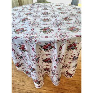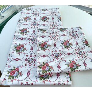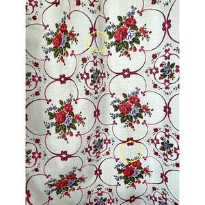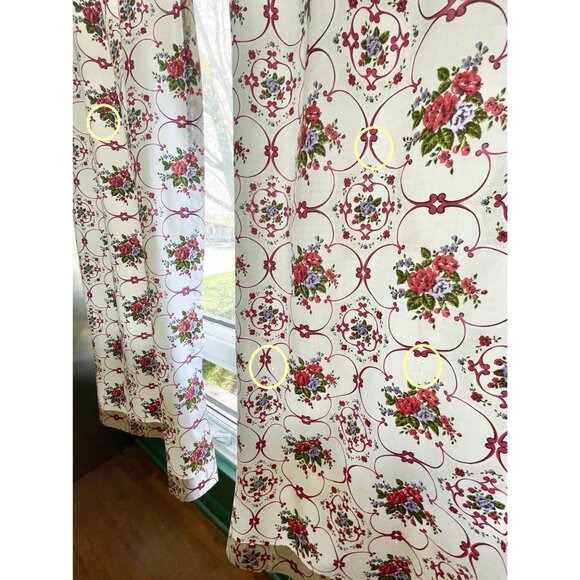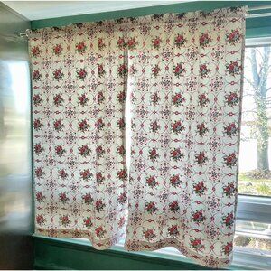 Vintage 60s curtains, pink medallions, Cabbage Roses provencal print, pair