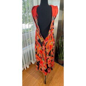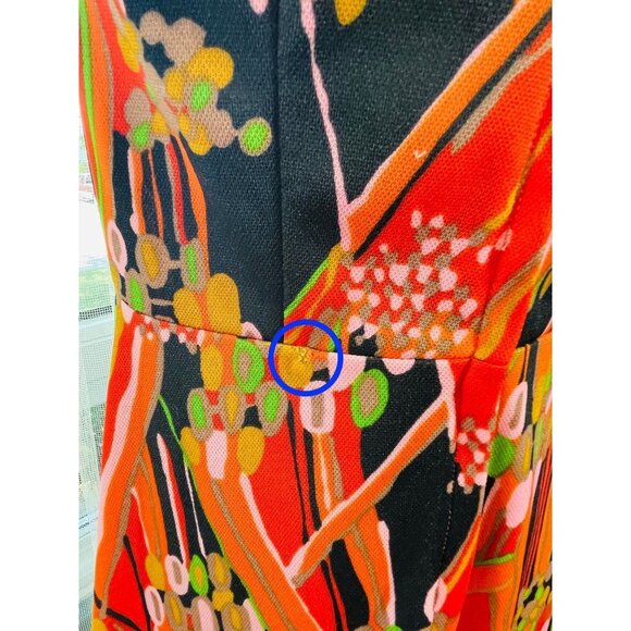 Vintage 60s dress, MOD orange green black large abstract pattern,