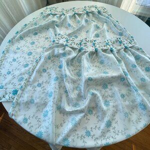 Vintage 60s floral pleated curtains, white and blue, Fiberglass, pair of panels