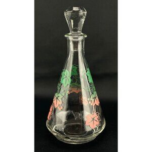 Lovely vintage 60s small glass decanter bottle, pink and green vines pattern.