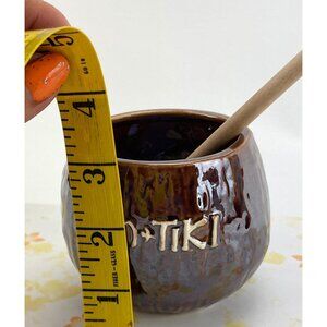 Vintage 60s honey jar, Kon Tiki pottery with wooden spoon, no lid