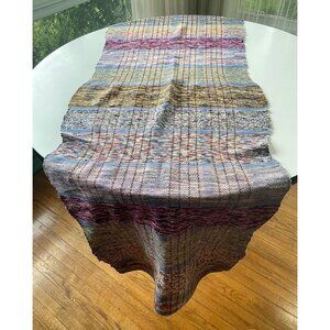 Made in Canada in the 60s, this long rag rug is showing stripes of blue, green, pink and purple; it would make quite a statement in an entryway, a kitchen or bathroom.