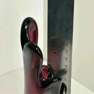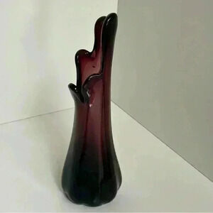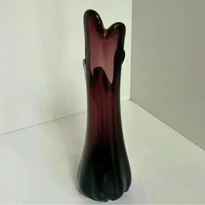 Vintage 60s midcentury amethyst purple 5 finger swung vase. Lovely art glass vase in very good preowned condition. The base has a couple small chips, but the vase is free of any other damage. This would make an excellent addition to anyone’s collection.