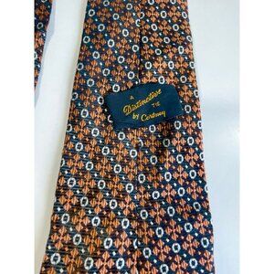 Very groovy vintage 70s necktie, by Cortney Distinctive tie. Gorgeous orange brown and navy blue colors in a small geometric pattern.