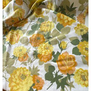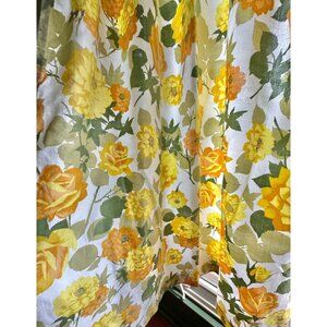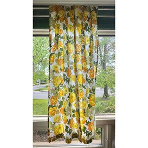 Vintage 60s pleated curtain, yellow, orange, green floral print, single panel