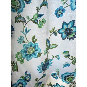 Vintage 60s white curtains, large blue, green, teal flowers, MCM, for one pair