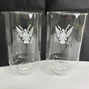 Vintage 7" Clear Glass Hurricane Lamps Shade with Eagle Set of 2
