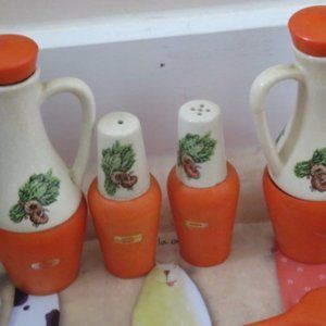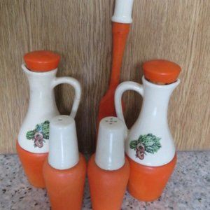 Vintage 70's 5 Piece Salad Cruet Set Ceramic & Plastic (K242)