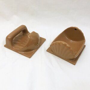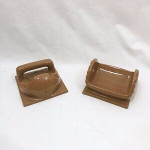 Vintage 70s 80s Bathroom Soap and toilet roll Holders Ceramic Brown Tan Retro Re