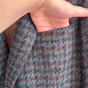 A rare deadstock Calvin Klein blazer from the late 70s/early 80s, complete with its original paper tag still attached. Crafted in Canada from a heavyweight wool blend, this piece features a brown and teal houndstooth check, fully lined interior, and classic two-button closure. Timeless tailoring meets collectible vintage Calvin Klein.
