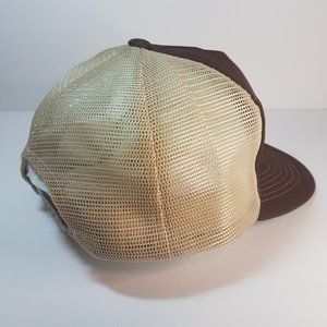 Brown/cream; brown brim (top); green brim (underside) - please see photos - mesh & snap back on this hat are not white; rather a cream/tan/off white/light brown color