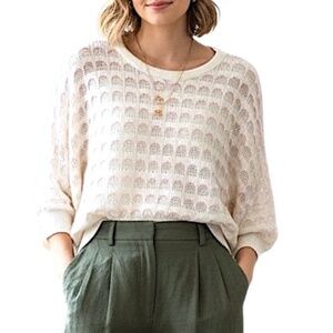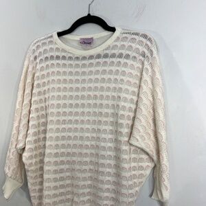 Vintage 70s 80s ivory pink open knit oversized batwing lightweight sweater