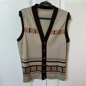 Vintage 70’s Acrylic Tan Funky Knit Grandpa Sweater Vest