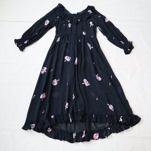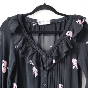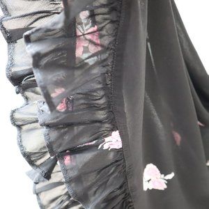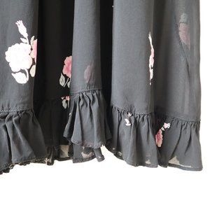 Vintage 70s Albert Nipon Black Floral Sheer Midi Dress, Size Small