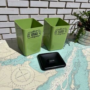 Vintage 70s Beacon Sugar and Flour Avocado Green Canister Set