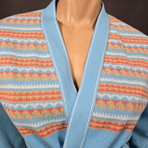 * Vintage 70's light blue/orange ribbed belted cardigan