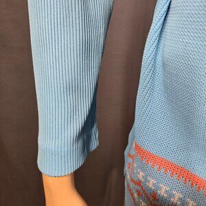 Vintage 70s Belted Cardigan Womens Size M Blue Orange Ribbed Long Sleeve