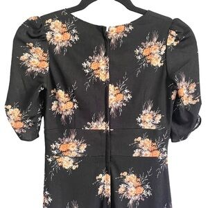 Vintage 70s Black Floral Sweetheart Neck Maxi Dress - 2-4/XS
