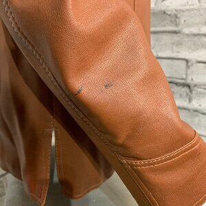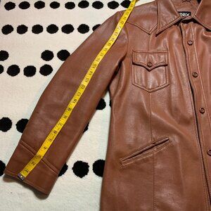 Vintage 70s Camel Faux Leather Shirt Jacket Retro Disco Collar Coat Shacket