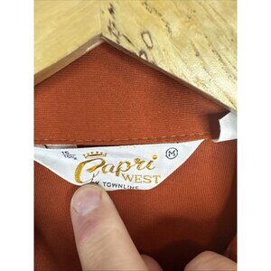 Vintage 70s Capri West Disco Shirt Rust Orange Big Collar Polyester 15.5 M
